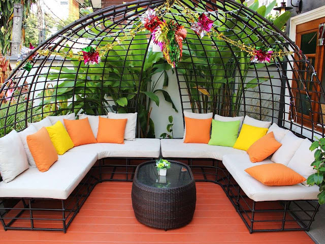 Bila sofa biasanya ditemukan di ruang tamu, sofa juga cocok lho untuk ditempatkan di teras.